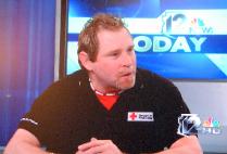 | Dave Knoer,left, Red Cross Disaster Action Team Lead, Coordinator and volunteer photographer, during Operation Good Neighbor. The local humanitarian effort assisted displaced Hurricane Katrina clients. |